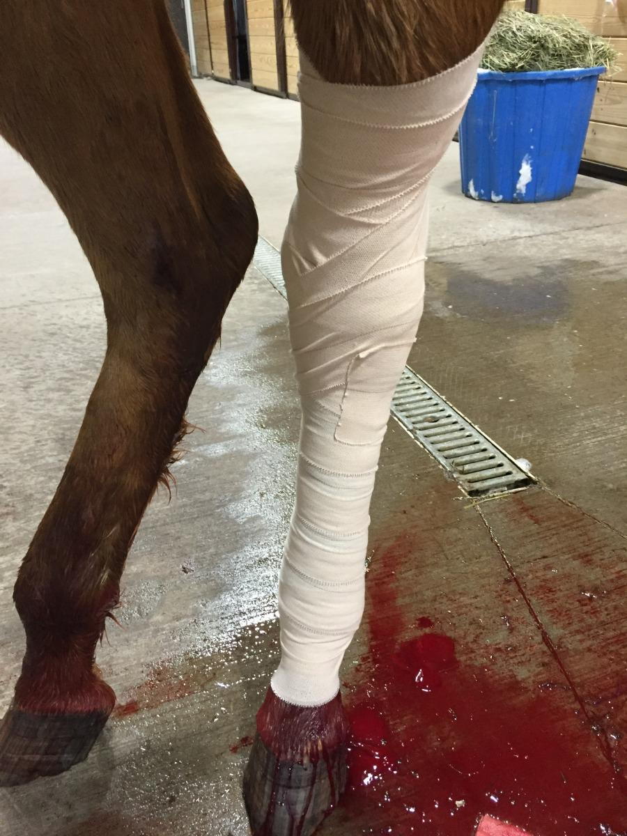 - Watch for other problems. If the horse loses its appetite or there is an elevation in body temperature greater than 101.5F, call us. If the bandage appears to be too tight, cut through the support layers, leave them in place and wrap the new bandage around the first one more loosely.