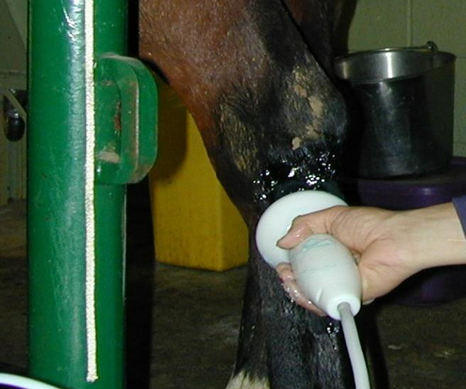(pict above applying shockwave therapy to a lower arthritic/fusing tarsal metatarsal hock joint for pain relief)